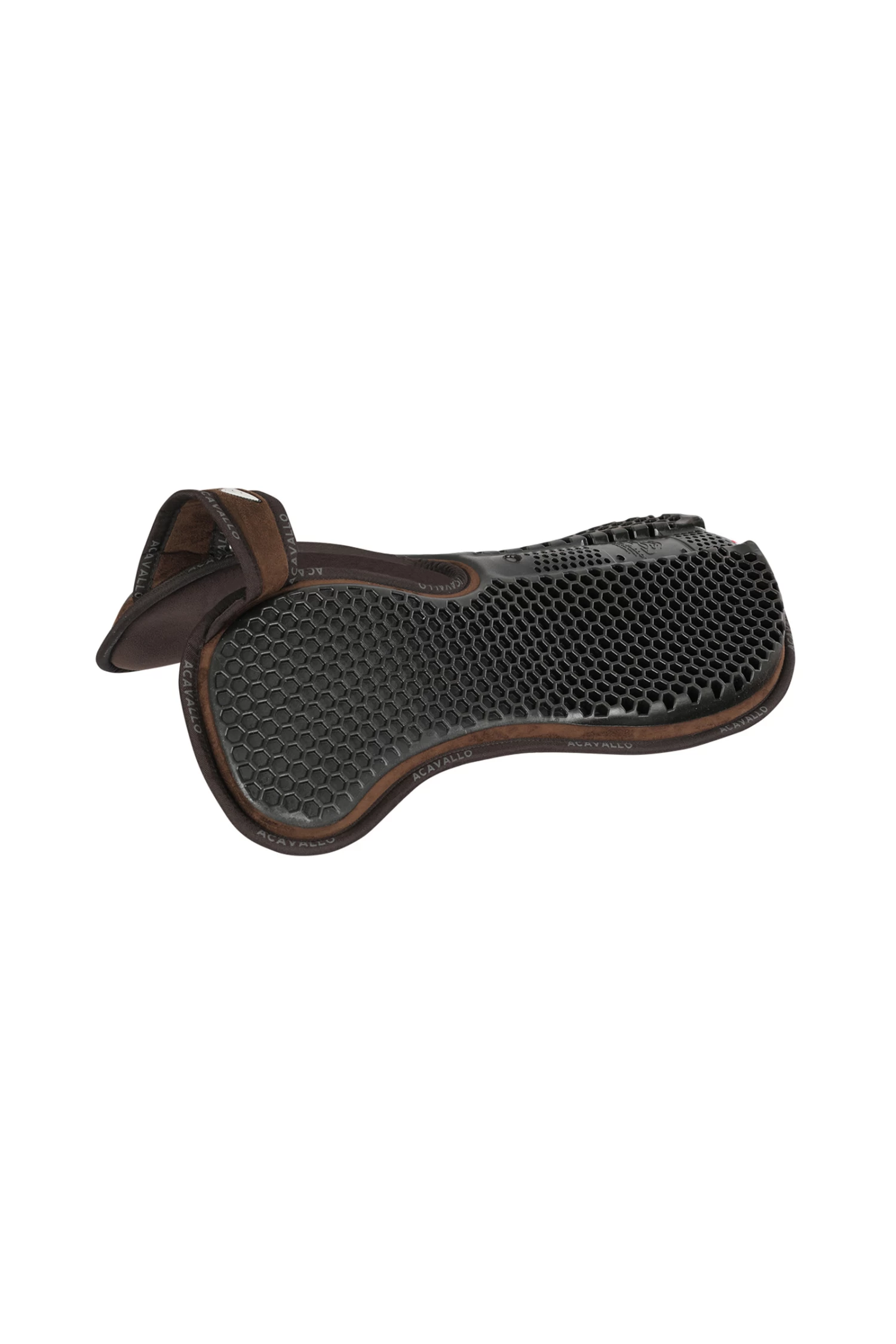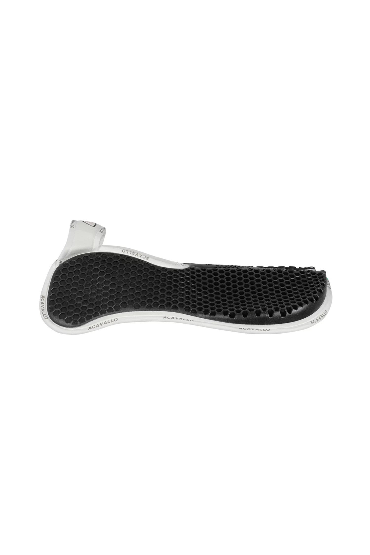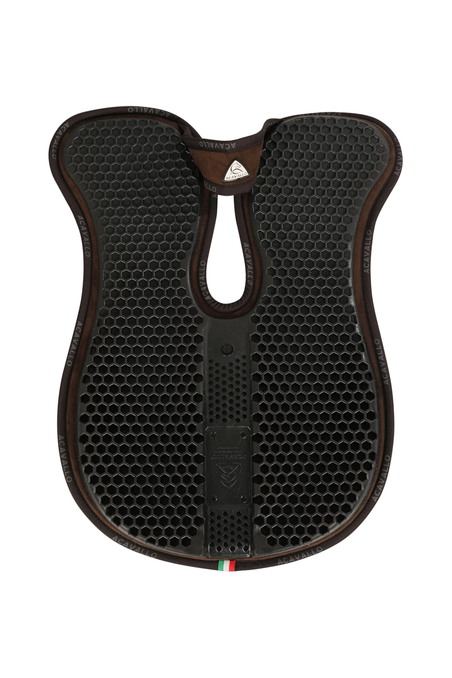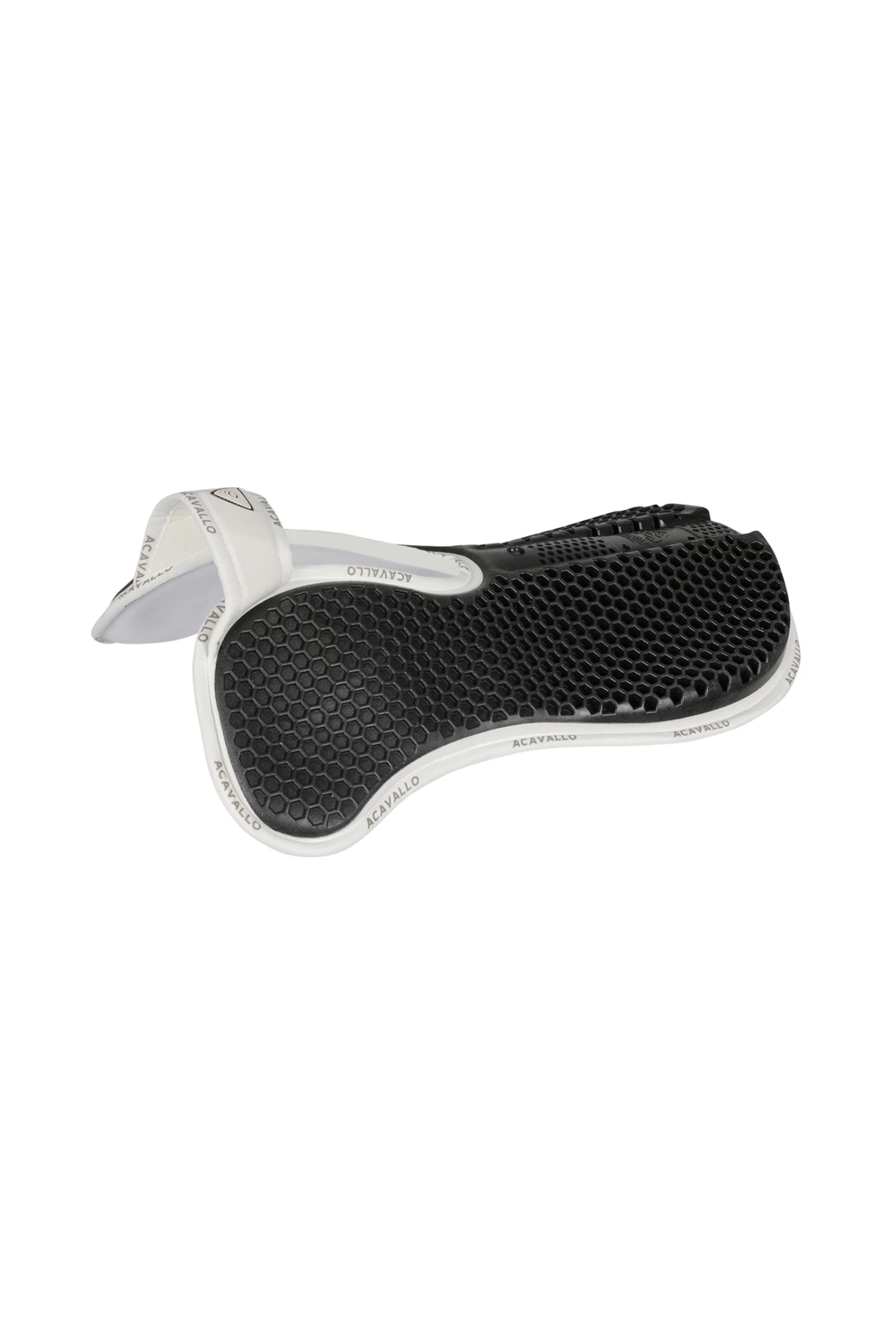 The Acavallo Withers Free Hexagonal gel pad in memory foam with back riser does not compress the withers, helps to prevent problems by distributing weight evenly. Anti-slip, shock absorbing hexagonal gel pad properties are combined with the shock absorbing properties of the memory foam and with a rear riser. Because of its hexagonal gel structure, air is compressed within the cells of this non-slip pad and is expelled as the horse moves creating a cushion under the saddle. Designed to fit under any style and size of English saddles. It is shaped and moulded to the saddle with a slightly thinner depth of gel running down the centre of the pad allowing the gel to sit up in the gullet. The anatomic cut of the pad and the technical characteristics of the memory foam allows the pad to adapt and shape itself deeply to the silhouette of the horse, also allowing the surface pressure to be distributed over a large area. To these features are added the ability to absorb shocks, dampen vibrations and regulate the horse’s body temperature. The Acavallo® Classic Gel is hypoallergenic, non-toxic and does not react negatively in contact with the skin, characteristics that allow the pad to be used directly in contact with it.