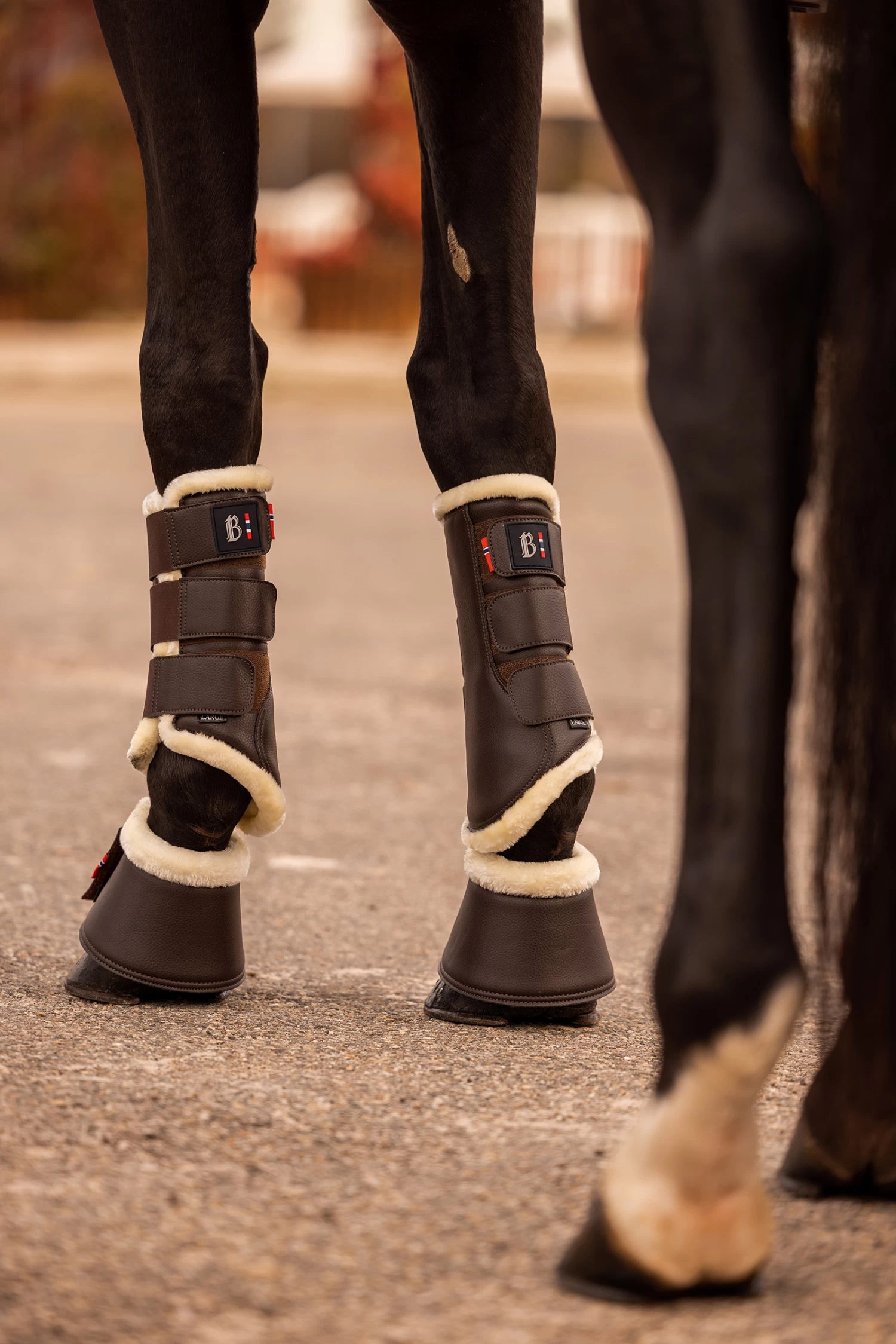 Our B Vertigo Wellington boots are made from durable synthetic leather material and lined with soft faux fur. Hook-and-loop and elasticated fasteners give a secure fit to the horses leg. The classic look incorporates easily into your tack. Pair these boots with the rest of our B Vertigo Wellington range for a full outfit!