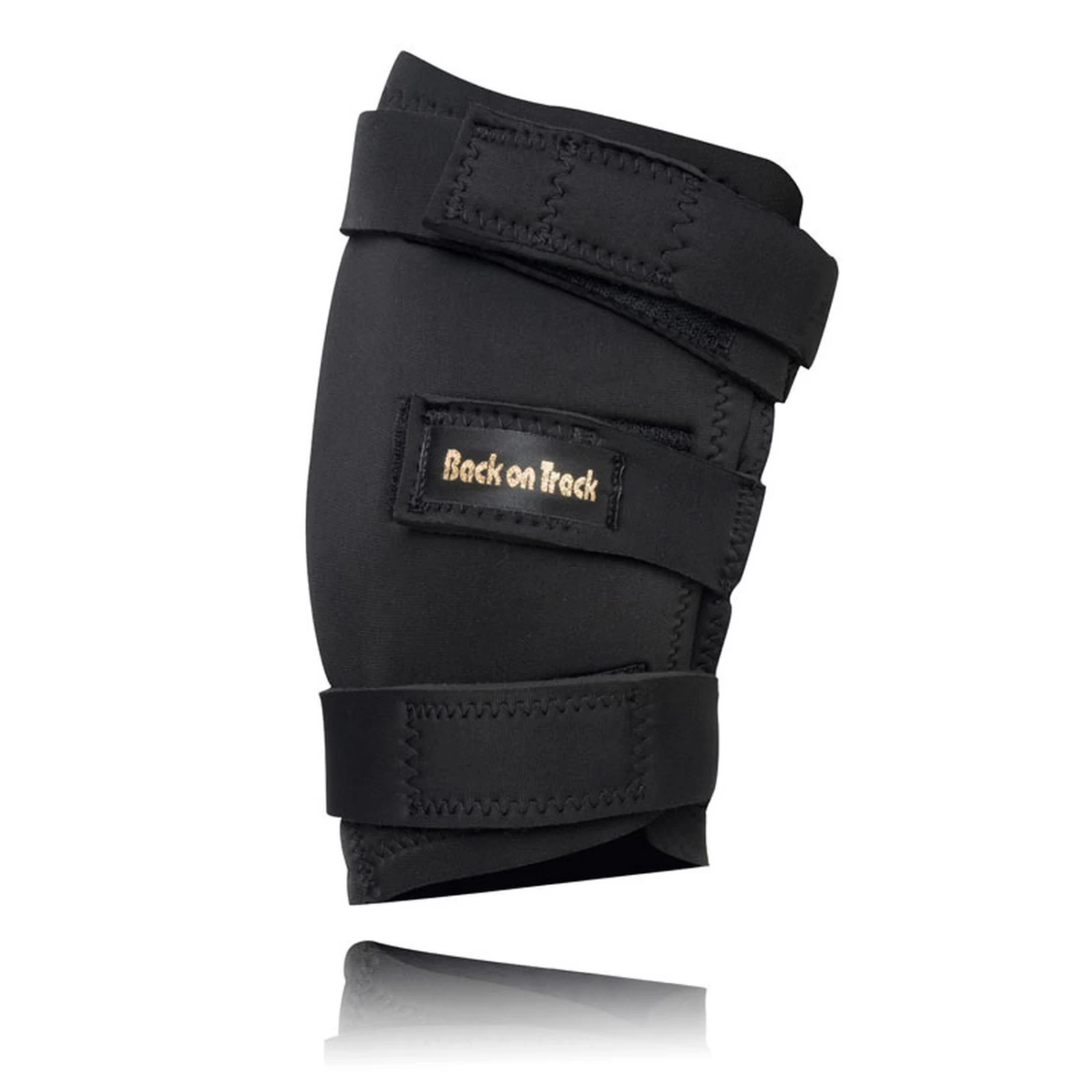 Hock brace for left leg hock. The Back on Track® Hock Brace has been designed to fit snugly and securely to this hugely important but often difficult to wrap joint. Designed to deliver the benefits of reflected infrared where it is most needed, the Hock Brace supports suppleness and flexion and is ideal for horses with hock problems.