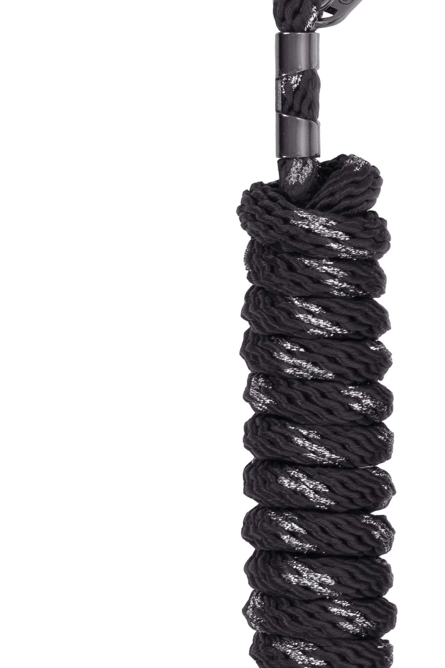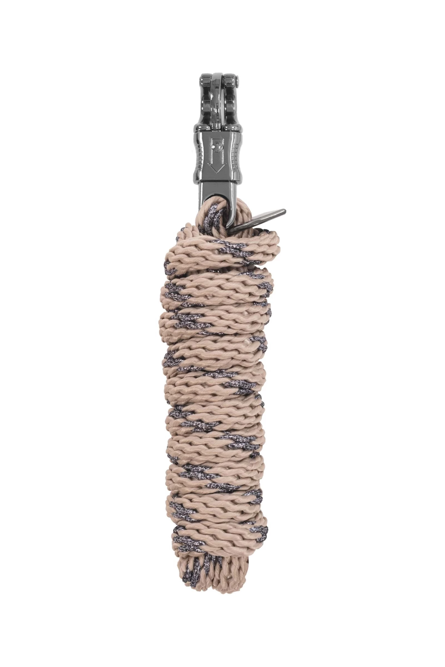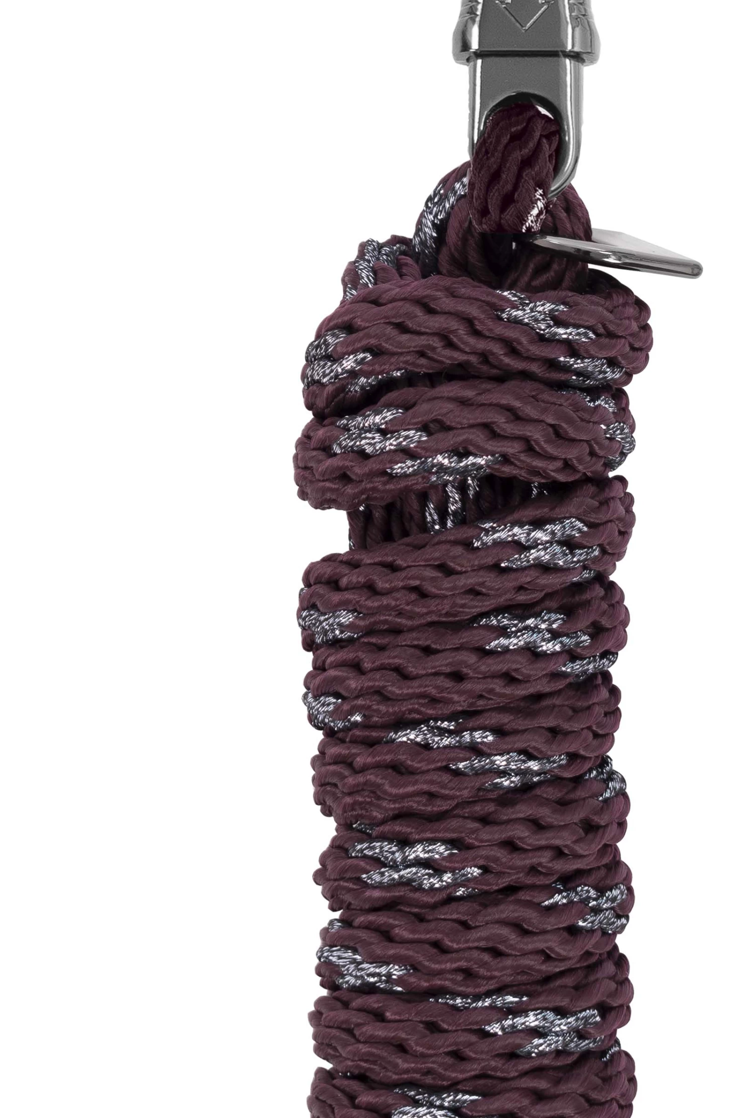 Lead rope with panic hook and decorative new metal plate with milled, silver Cavallo logo. All metal parts in gunmetal optic. The special weave enables a perfect grip. Plain, interwoven with silver shimmering stripes in metallic look. Length approx. 2,20 m.