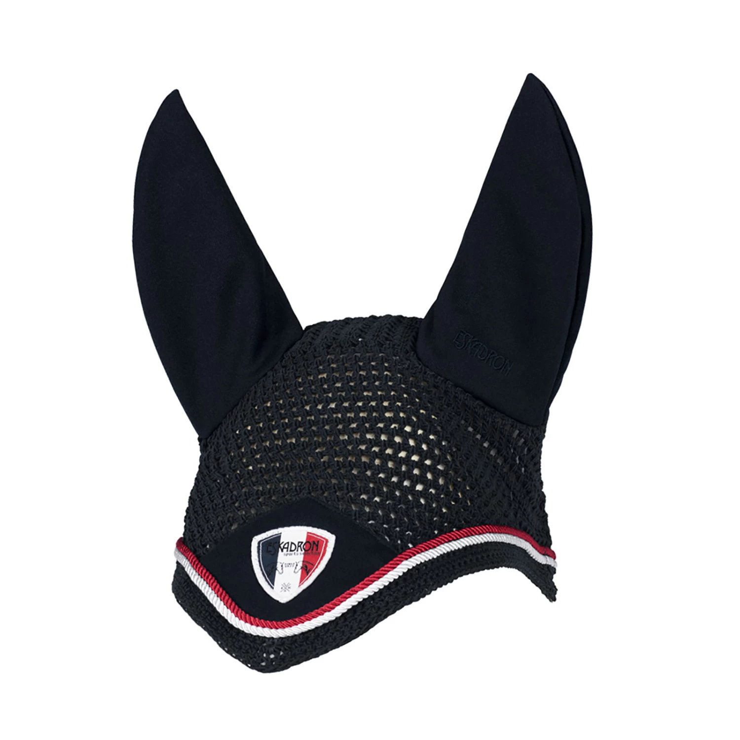 Crocheted fly protection with elastic ears that protects against troublesome pests in summer. It has a Sports Selection logo and double cords.