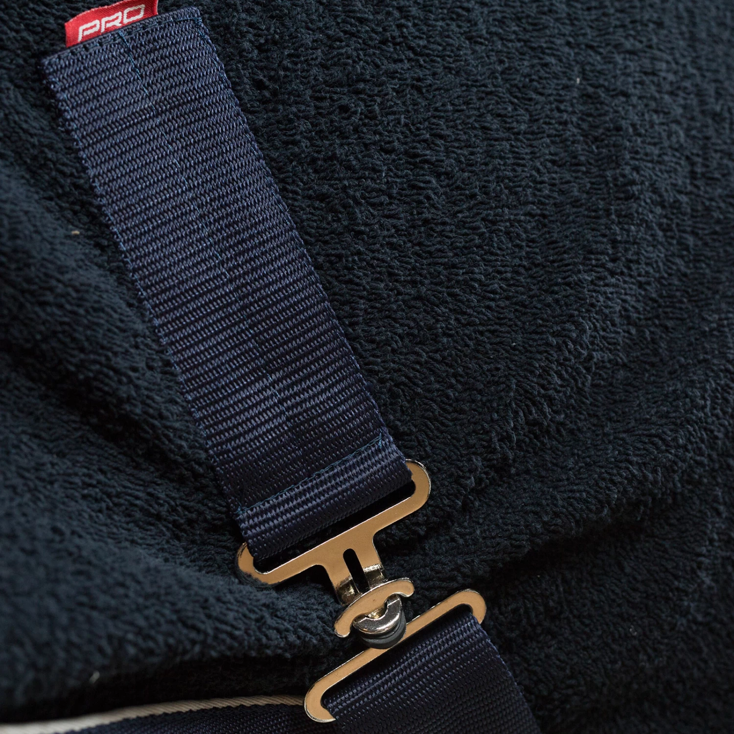 Soft cotton terry gives this cooler a bathrobe-like feel for your horse. This towel sheet is protective and great for use after bath or exercise. Two detachable surcingles and the simple front closure make this blanket easy to use. This is a superior sheet with a great fit.