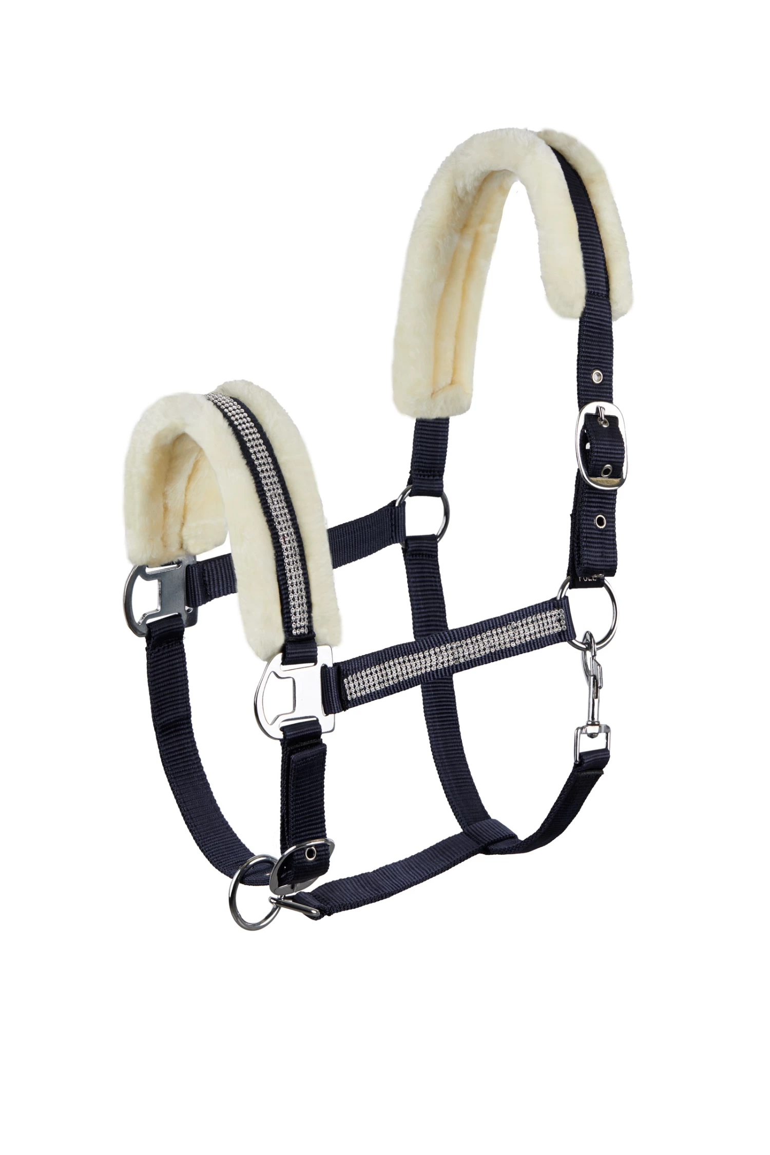 Luxurious soft faux fur at the nose and crown does not only look gorgeous but also makes it soft and comfortable for your horse to wear. The matching rhinestone detailing is eye catching and will be sure to get you compliments. The large snap fastener at the crown is easy and convenient to use. There is a buckle fastener and an adjustable nose strap to ensure you get just the right fit. All buckles and fastenings come in a shiny chrome finish.