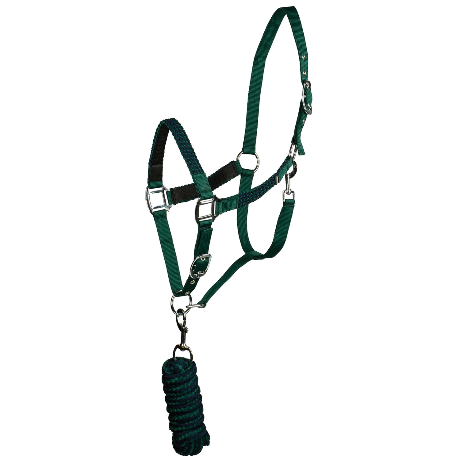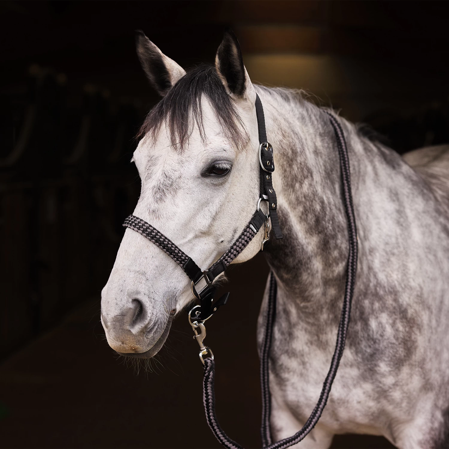 Braided cheeks and nose add a nice touch to this halter and lead set. The braided pattern matches the lead. Adjustable crown and nose allow you to find the perfect fit.