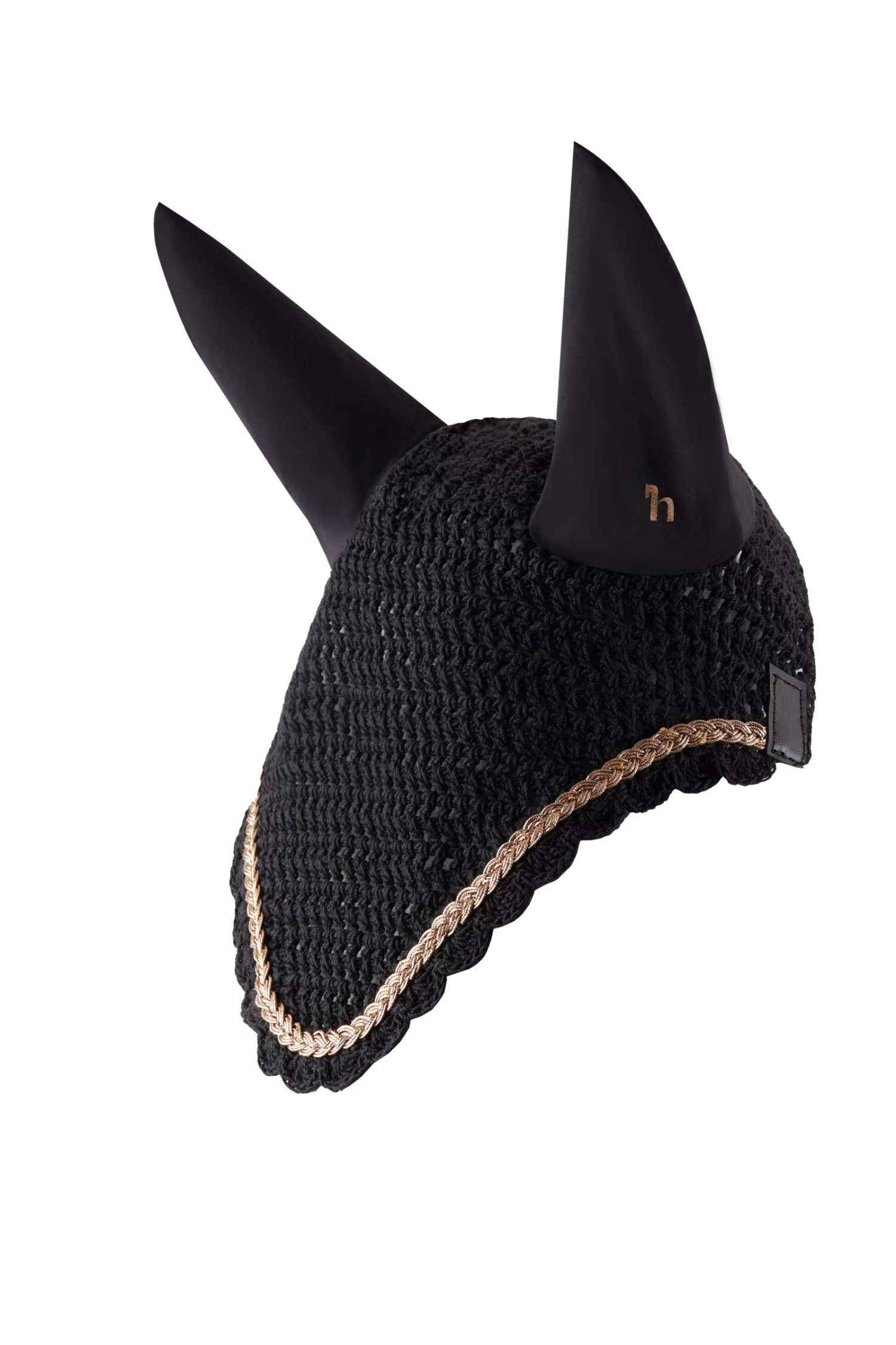 The Horze Glarus ear net is made from delicate crochet. Elastic ears provide comfort and keep distractions to a minimum. Braided rose gold piping runs all the way around the ear net, bringing a little bling to your tack. Combine this ear net with our Horze Glarus saddle pad (available for dressage and all purpose) for a full look!