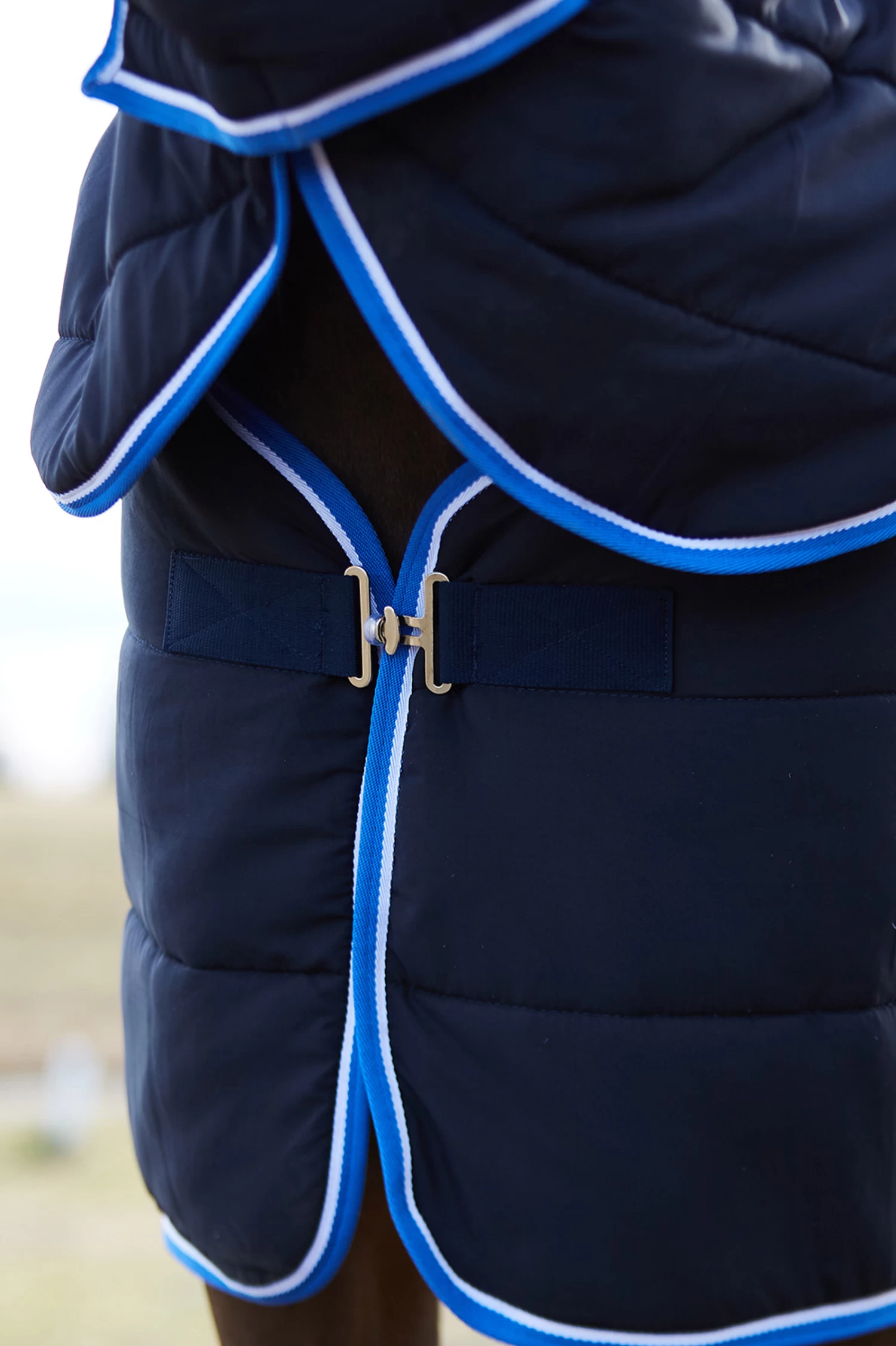 This light rug with full neck can be worn on its own or can be combined with a turnout rug. The breathable material is made with an anti-slip surface. Additional t-buckles at the front, X-surcingles and a tail strap keep it in place. Hook-and-loop fastenings at the neck make it easy to use. A timeless design makes this rug useable for seasons to come.