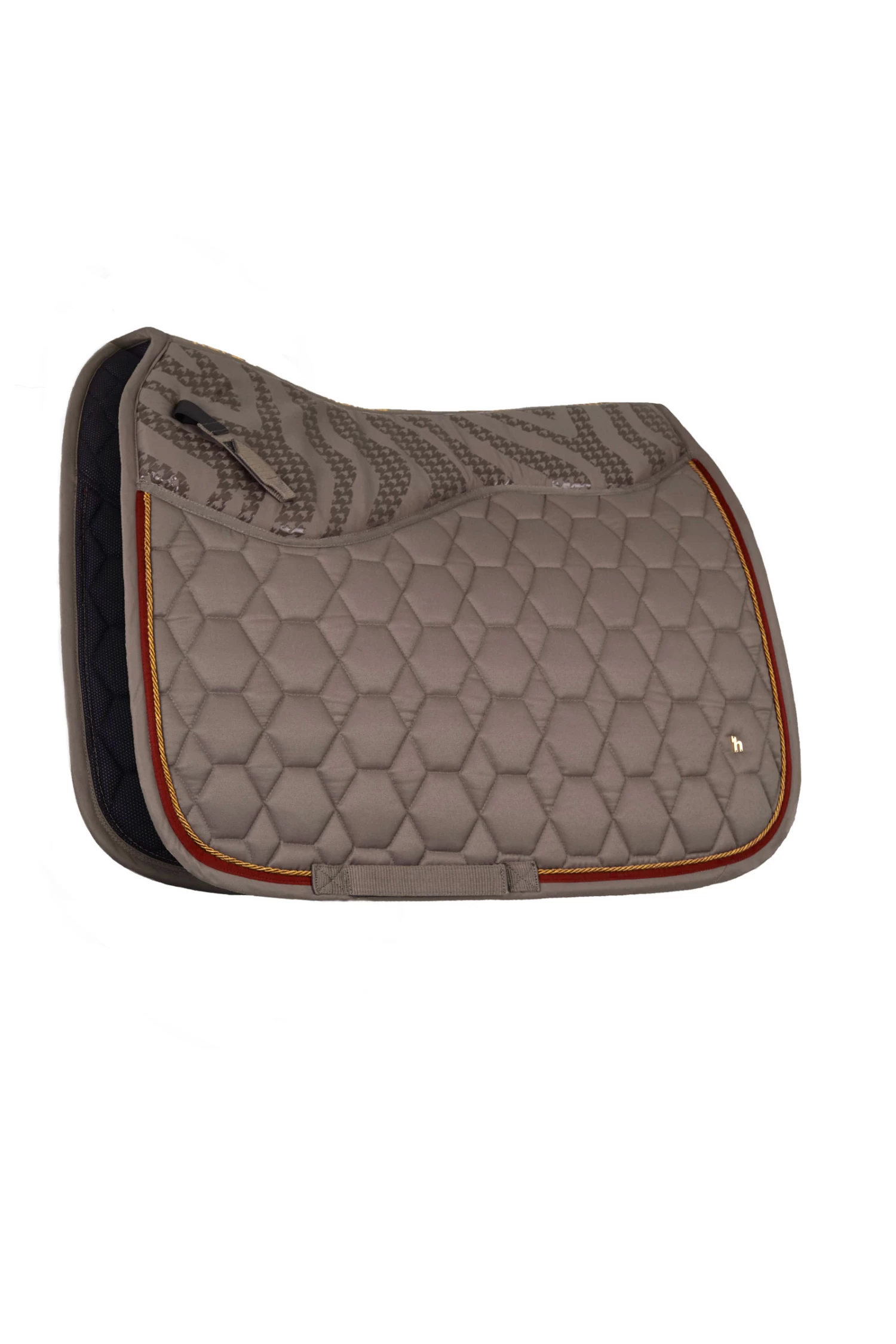 The anatomically cut Horze Kenya saddle pad is equipped with a silicone detail to prevent the saddle from slipping. Light padding beneath the saddle adds comfort. Moisture wicking lining keeps your horse’s back dry. Three rows of pipinig and the timeless design add a classic look. Metallic details make for an elegant look. Pair this saddle pad with the rest of our Horze Kenya range for a full outfit.