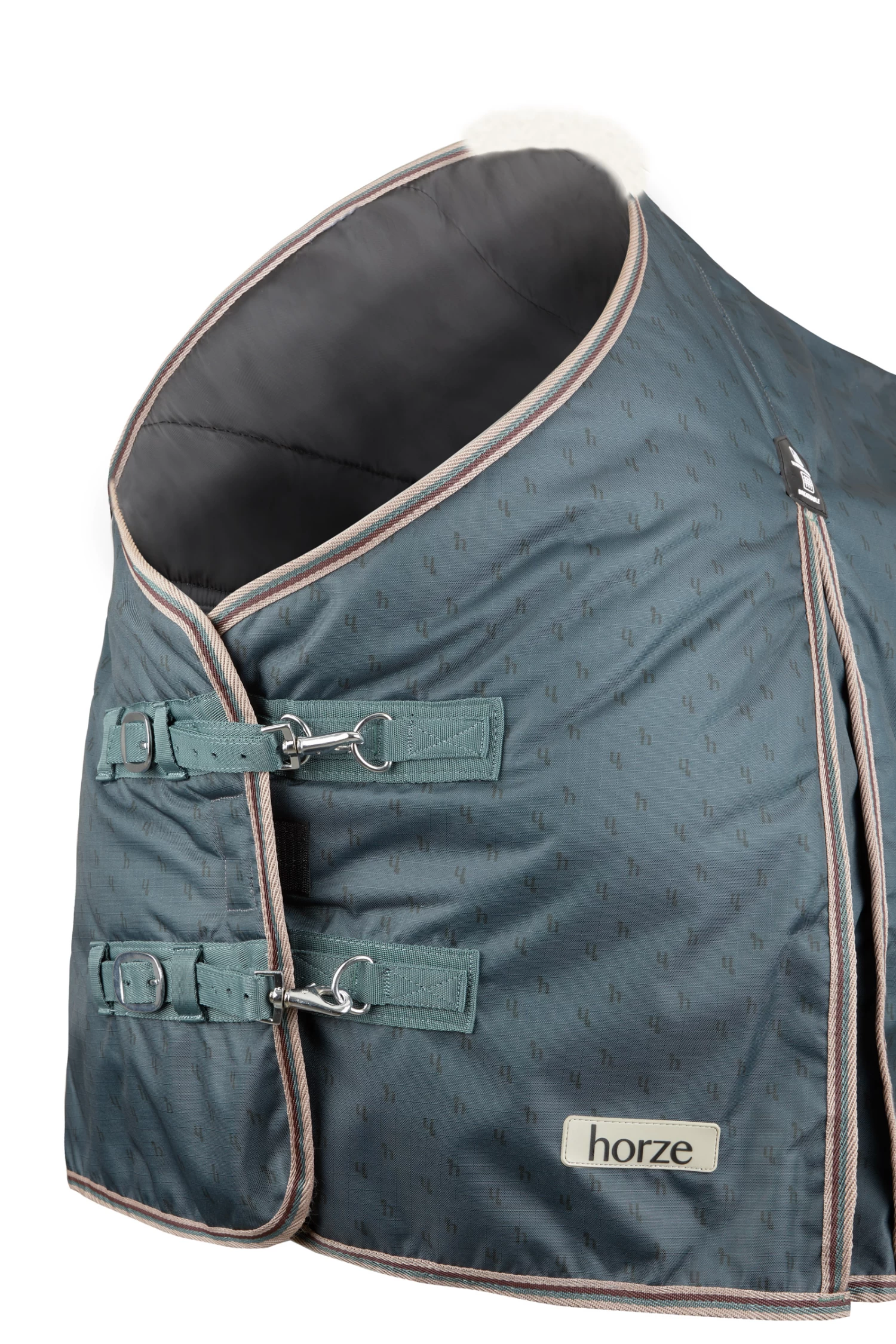 The Horze Leighton turnout rug is made from waterproof material with warm filling. Double front closure, x-surcingles and tail flap keep the rug in plac. High gussets do not restrict your horse’s movement. The Horze logo print makes for a classic look. Pair this rug with the rest of our Horze Leighton teens collection for a full look!