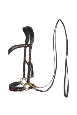 The Horze Somerset Bridle is cut anatomically and padded at nose and neck, giving your horse the highest comfort. The U-shaped brow band with sparkly crystals adds an elegant look. Convenient snap buttons make it easy to change if you need a plain brow band. Metal fittings match the soft nappa leather of the bridle perfectly.