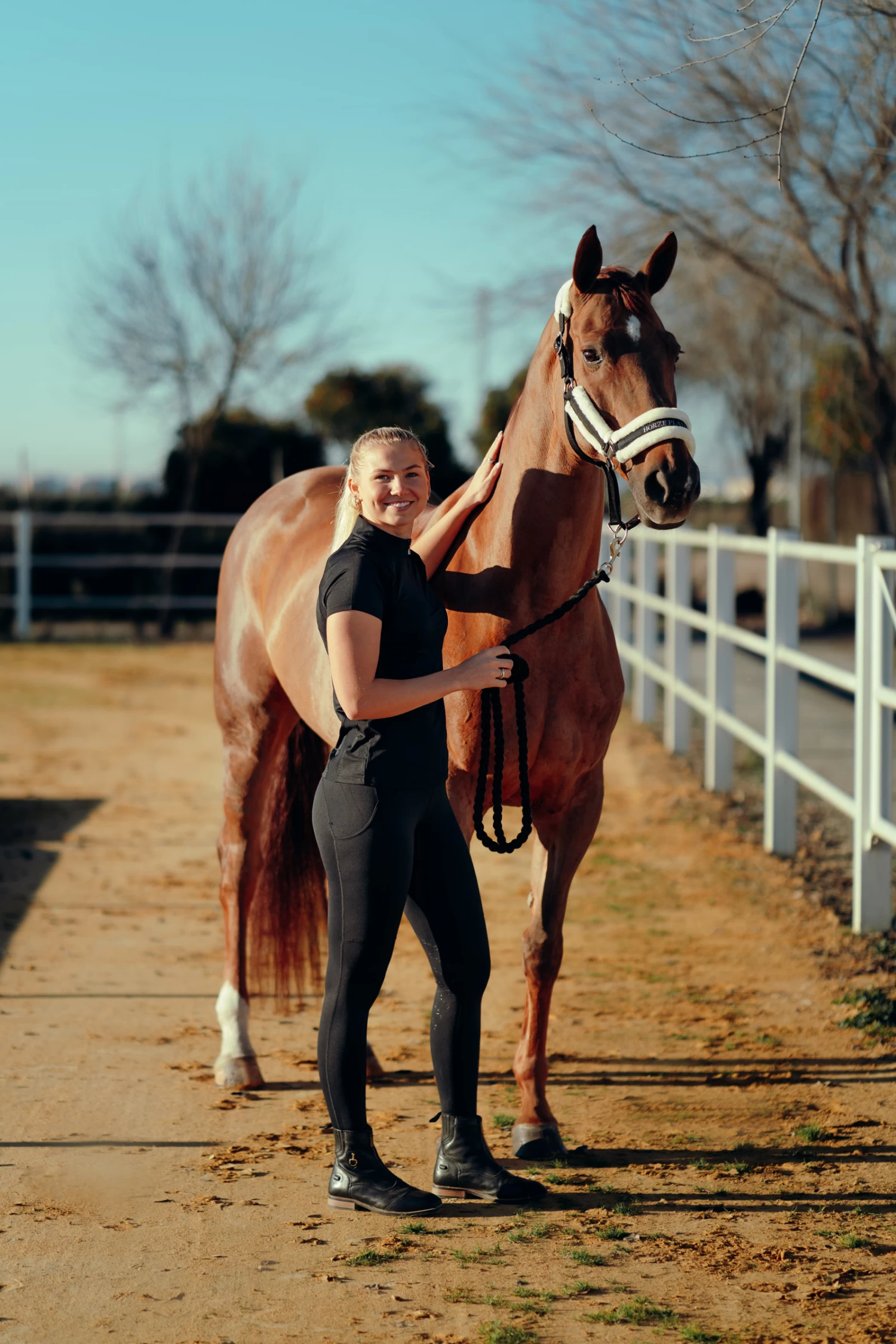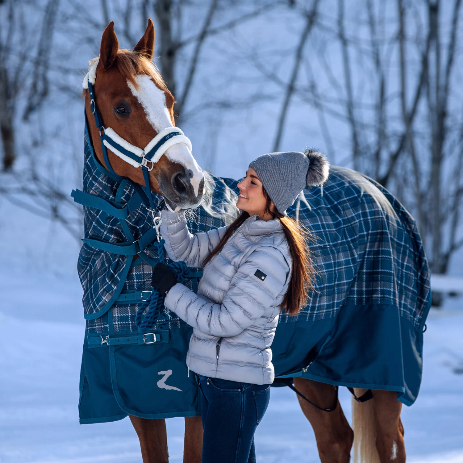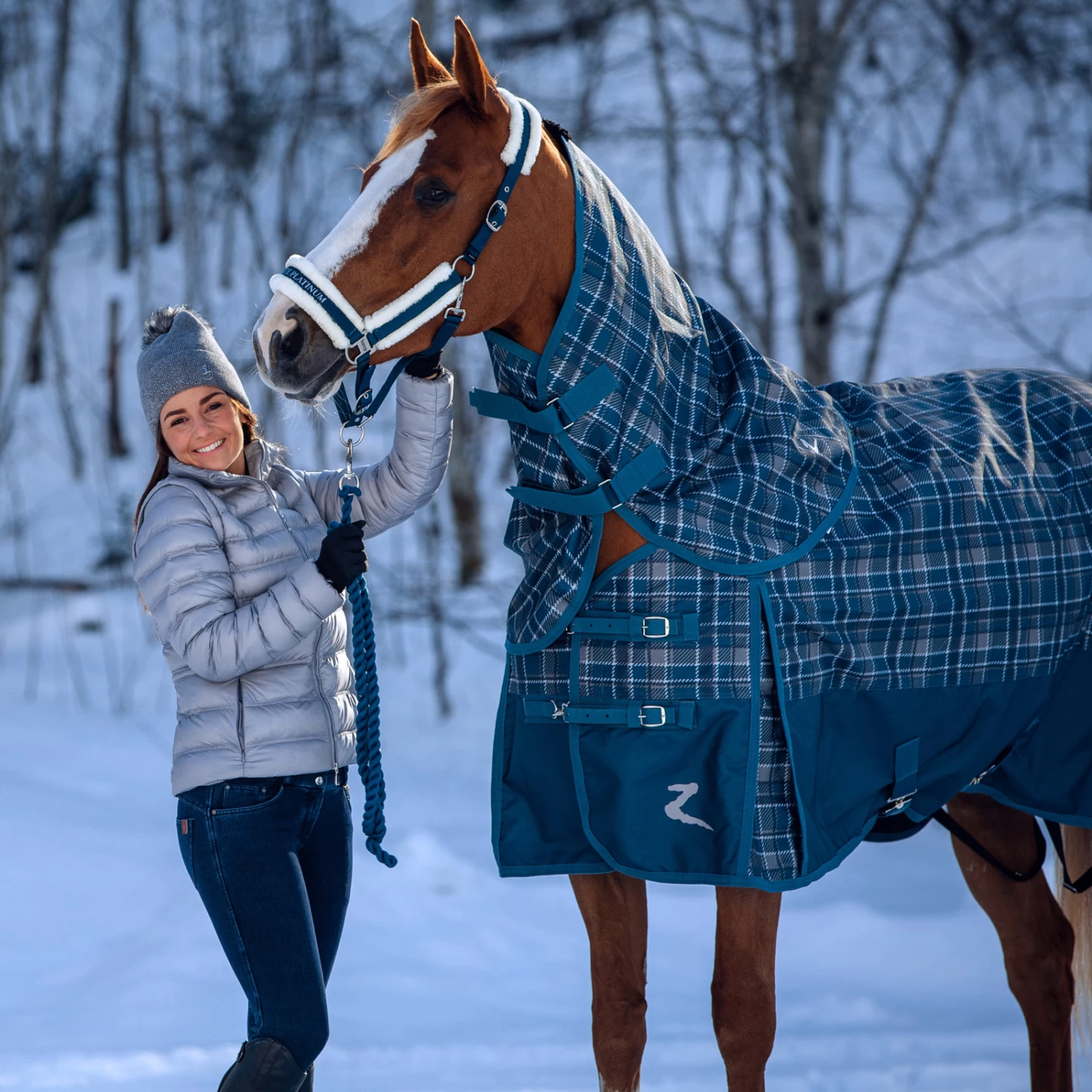 The Horze Stanford halter is lined with cosy faux fur at nose, crown and sides, making it super comfortable. The adjustable buckle at the crown ensures the perfect fit. Lurex embroidery adds a touch of luxury, and brushed silver fittings complete the look. Pair this halter with our matching Horze Stanford lead (#22639) for a full set.