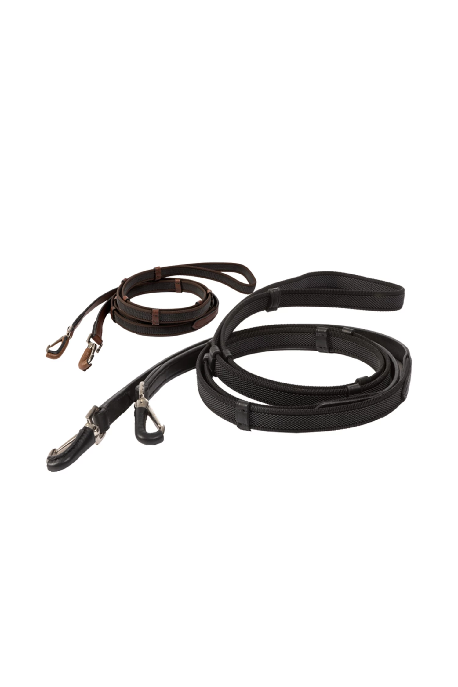 The rubberised reins are ideal for Iceland snaffles due to their special length. The reins are also end-to-end (no buckle in the middle). The snap hook is covered with leather.
