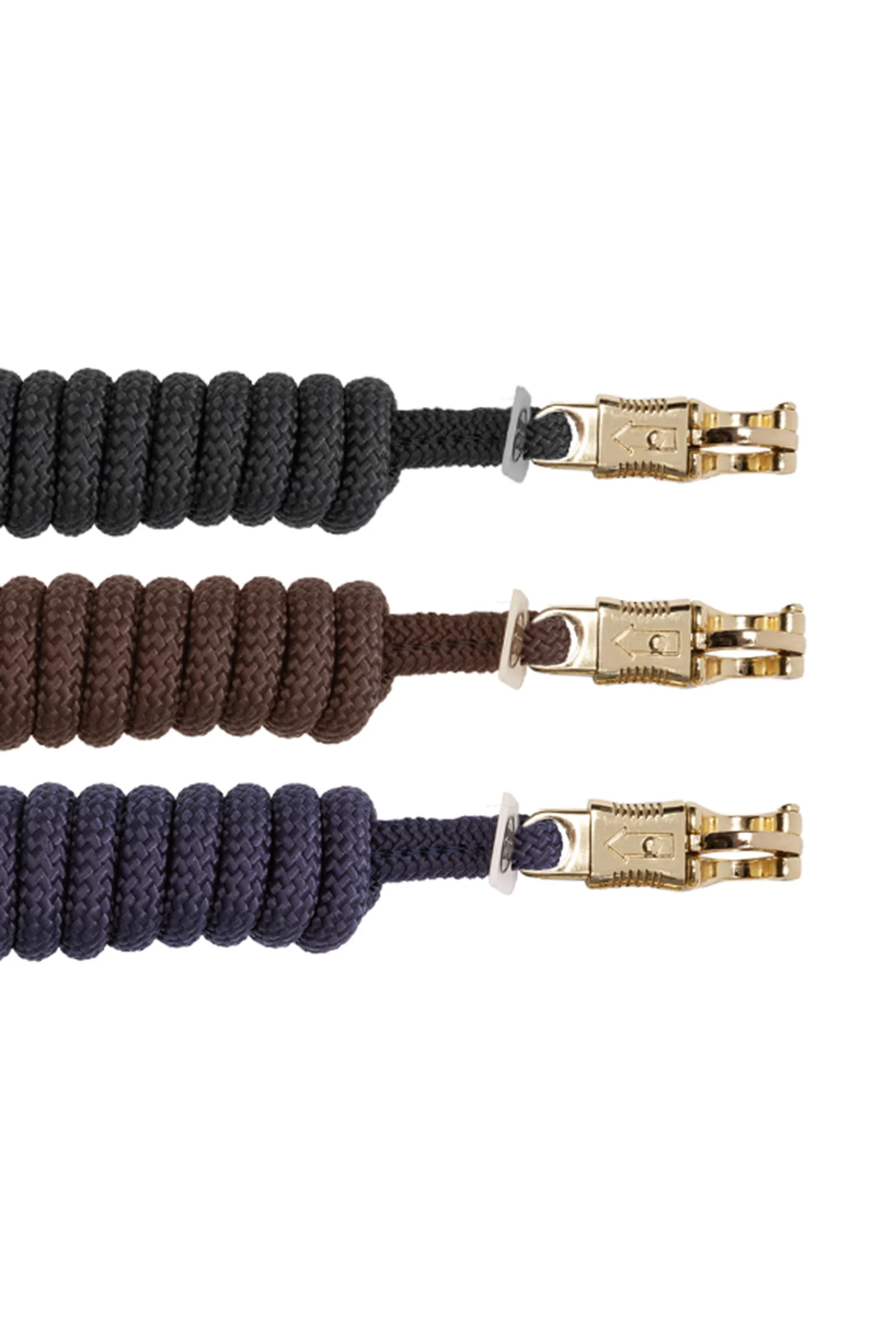 Comfortable, firm lead rope made of polyester. High quality panic clip in brass. Tail made of leather.