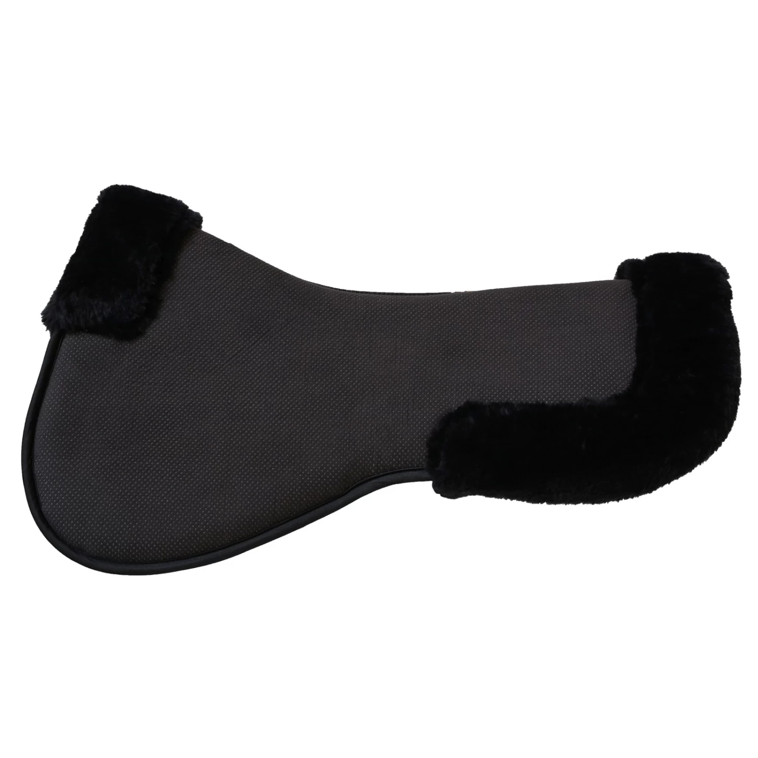 Because of the reduced thickness of the half pad it offers maximal freedom and stability and reduces back pain. It offers extra comfort to the horse and rider. The anatomic shape ensures the freedom of the withers and spine. The artificial sheepskin has no technical features, it only serves a design purpose, since the sheepskin is only placed at the height of the withers and alongside the cushions of the saddle.