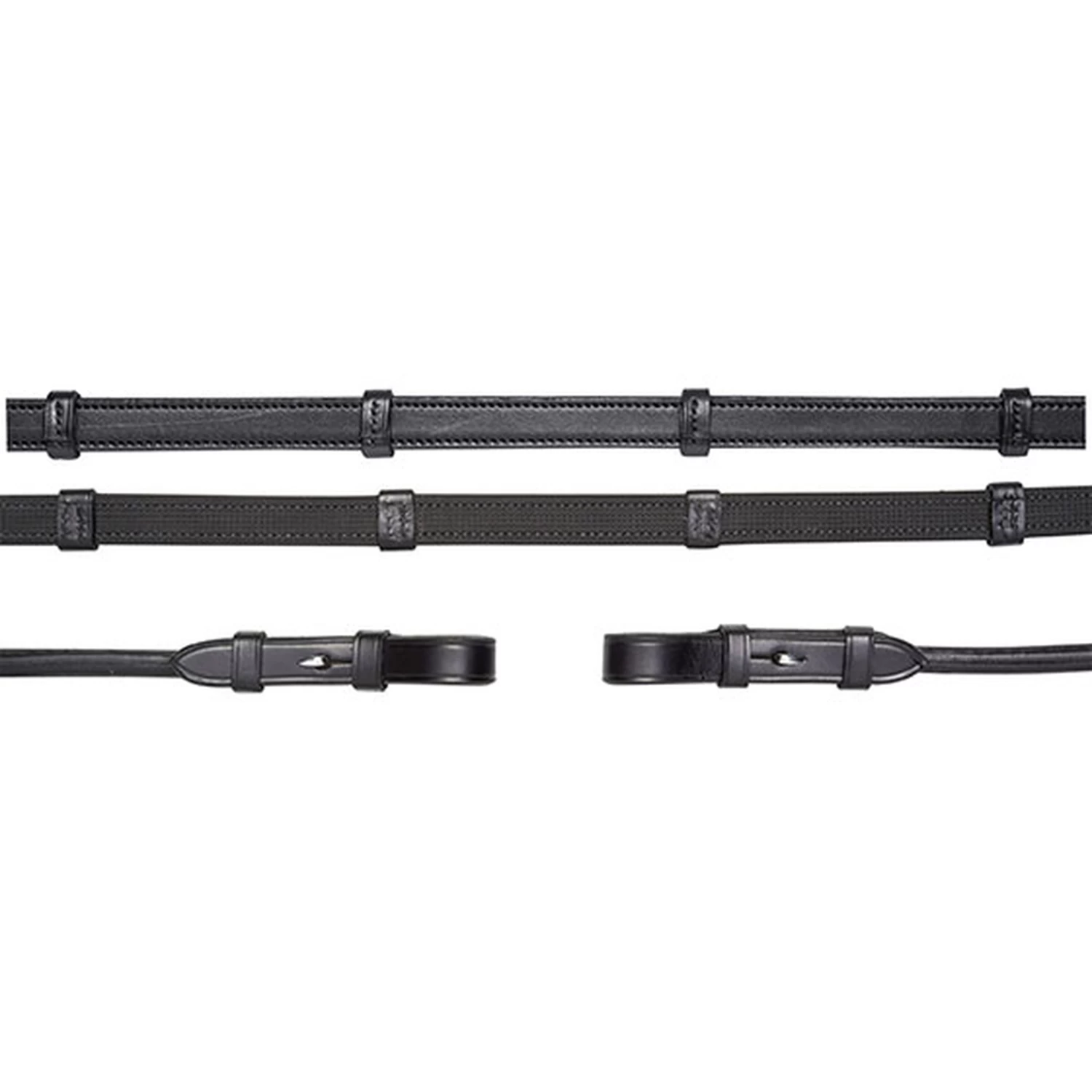 Double bridle reins rolled with hook and stud.
