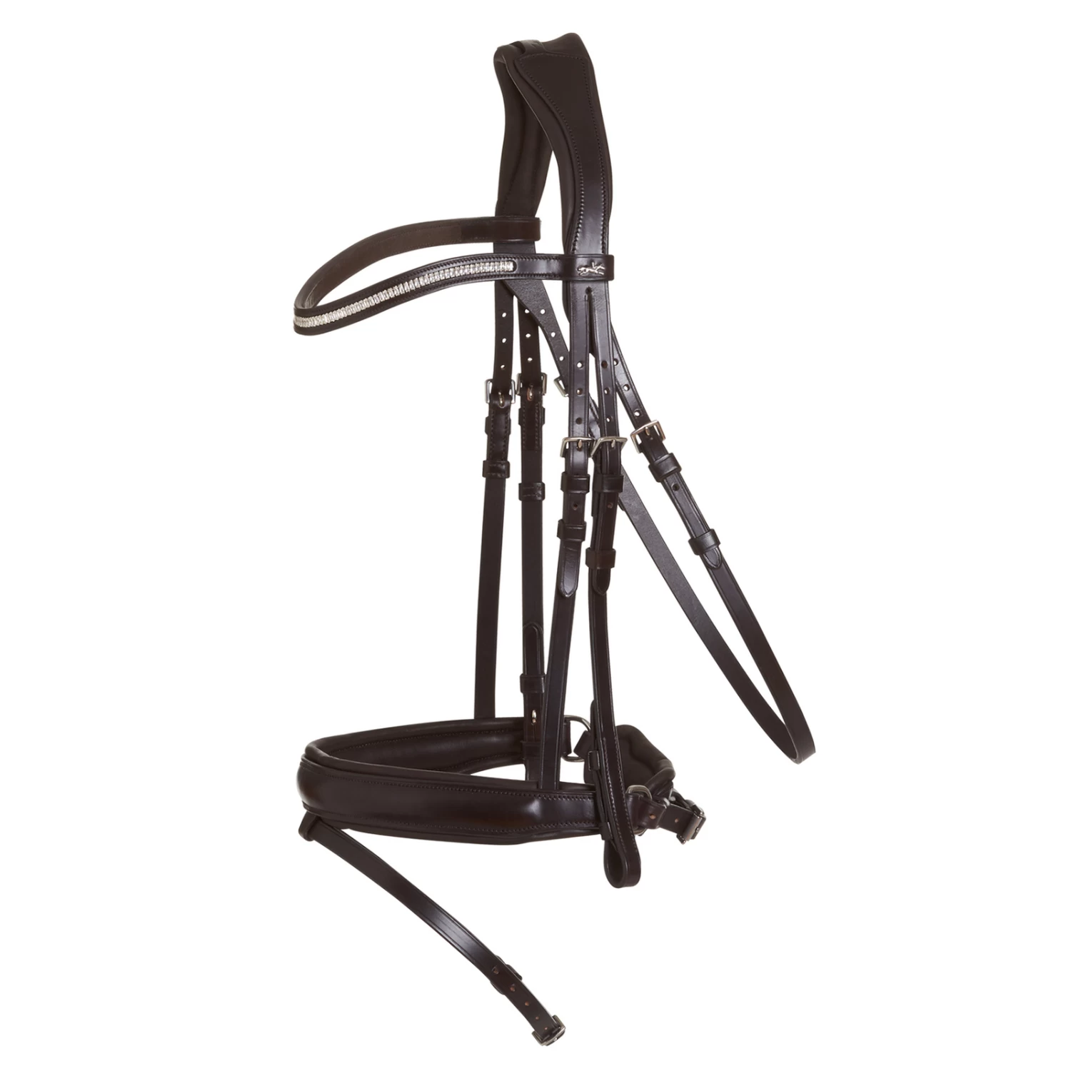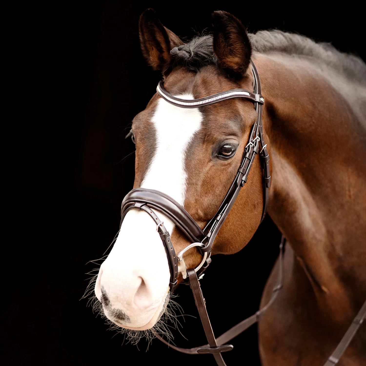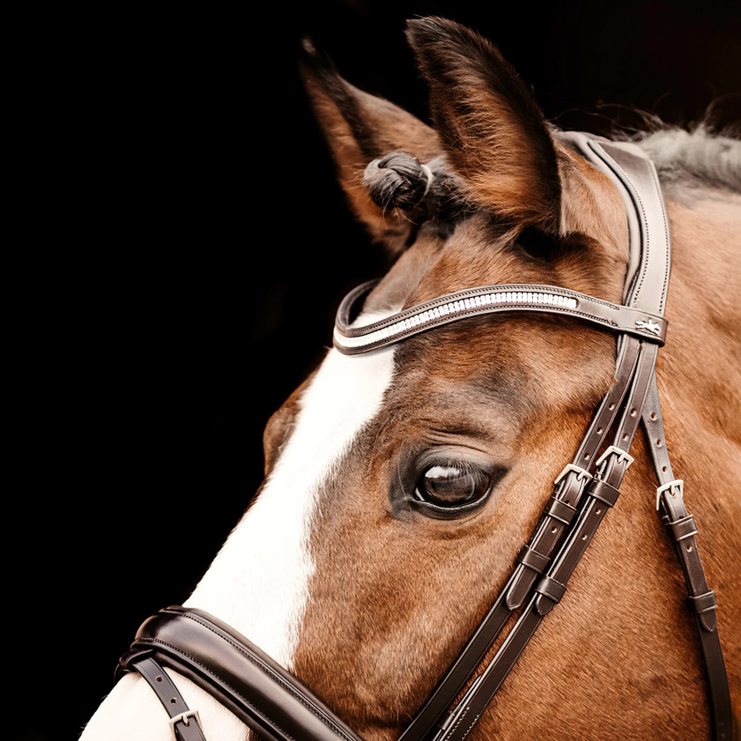 No matter if tournament crack or beloved leisure time partner – every horse responds positively to pressure relief especially in the sensitive head and neck area. The greater the feel-good factor, the greater the rideability as a rule. This is where the SEAFORD bridle model of Schockemöhle Sports comes into play. The anatomically shaped neck piece ensures maximum wearing comfort around the Atlas joint and neckband. Maximum cheekbone and bit freedom is provided by the softly underlayed and tapered noseband. The curved diamond browband is not only visually an eye-catcher, but also takes pressure from the eye-to-ear area. This bridle makes horse and rider happy.